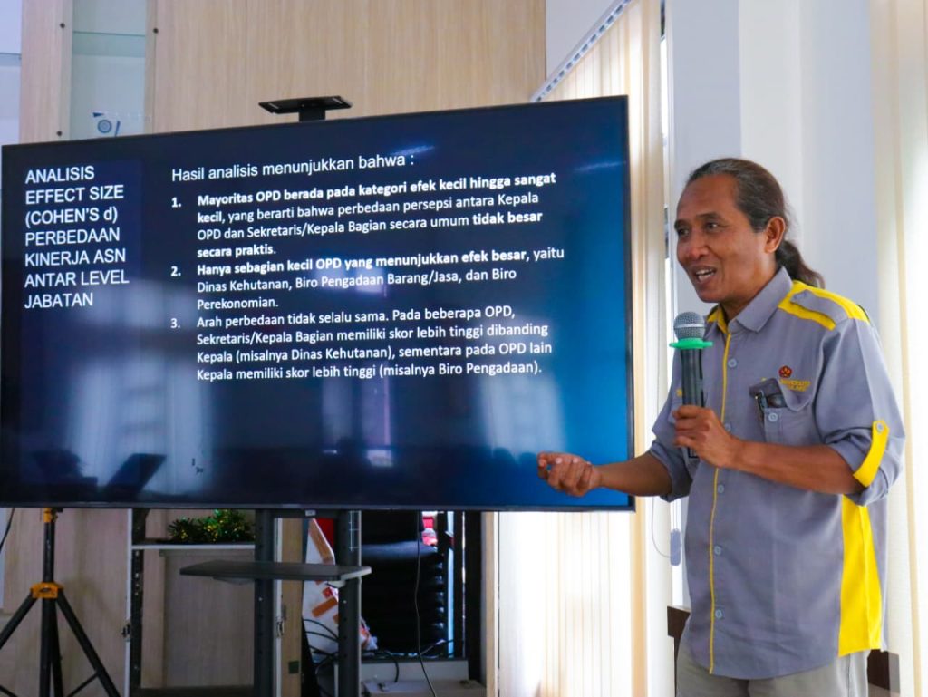 Pemaparan ini dilanjutkan oleh, Muhammad Ichsan, selaku peneliti yang menyebutkan bahwa hasil penelitian menunjukkan nilai BerAKHLAK ASN Provinsi Sulawsi Tengah sudah beranda pada kategori Tinggi, namun belum merata antar OPD maupun antar jenjang jabatan, OPD unggulan menunjukkan kinerja budaya kerja yang sangat baik. Sementara itu, dibeberapa OPD lain masih membutuhkan penguatan.